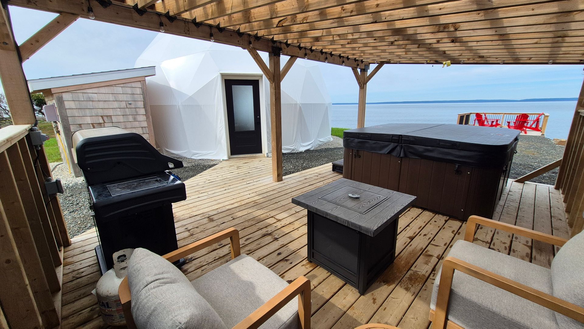 Perched above the sparkling waters of St. Mary’s Bay in Church Point, Nova Scotia, The Water’s Edge is a one-of-a-kind 26-foot luxury dome that blends rustic charm with modern amenities—designed for comfort, style, and unforgettable coastal views.